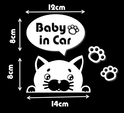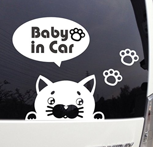 覗き込む ネコ 猫 吹き出し付きカッティングステッカー赤ちゃんカーステッカー (Baby in Car, 白)
