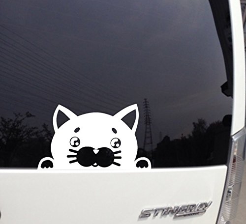覗き込む ネコ 猫 吹き出し付きカッティングステッカー赤ちゃんカーステッカー (吹出し無し, 白)