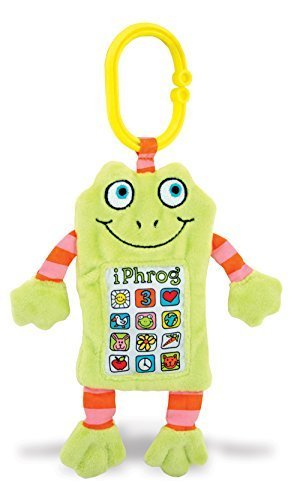 Give a baby a 'mobile device' of their own. No charging required! Each of these soft and colorful frogs comes with custom-printed fabric to give the look of every "app" a baby may need to press as well as a soft crinkle inside the soft, velour fabric. Each features a handy clip for the stroller or car seat.