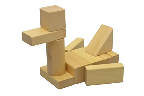 Wooden Blocks - 42 Pc Wood Buliding Block Set with Carrying Bag and Container (Natural Colored) - 100% Real Wood [並行輸入品]