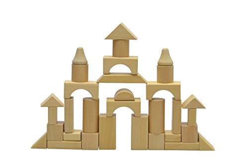 Wooden Blocks - 42 Pc Wood Building Block Set with Carrying Bag and Container (Natural Colored) - 100% Real Wood - From the makers of the best selling Wooden Train Tracks comes Imagination Toys Wood Block Sets. Stack Them, Count Them, Knock them Down. Your child will only be limited by their imagination. 100% lead and BPA Free, and never electronic.