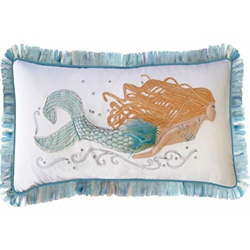Rightside Design I Sea Life Collection Pearl of The Sea Embroidered and Applique Mermaid Pillow [並行輸入品]