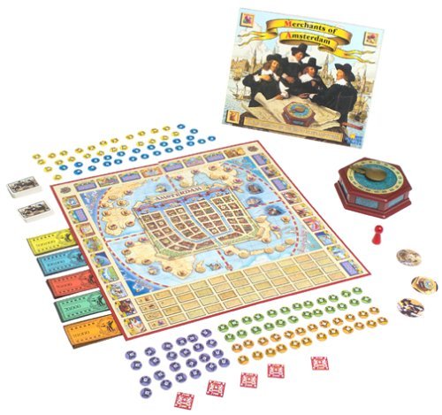 Amsterdam in 1600 was a booming town for trade and exploration. Dutch merchants traveled the world looking for valuable goods. The game features a special auction clock to support the use of the traditional Dutch auction. Author: Reiner Knizia,. Players: