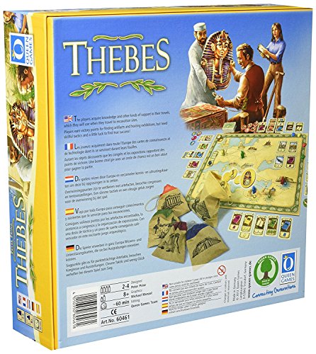 In Thebes, you and your fellow players are archeologists who travel through Europe acquiring knowledge, equipment, and assistants. You will be required to excavate historical sites in the regions of ancient Greece, Crete, Egypt, Palestine, and Mesopotamia