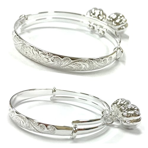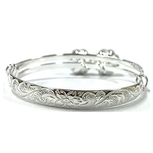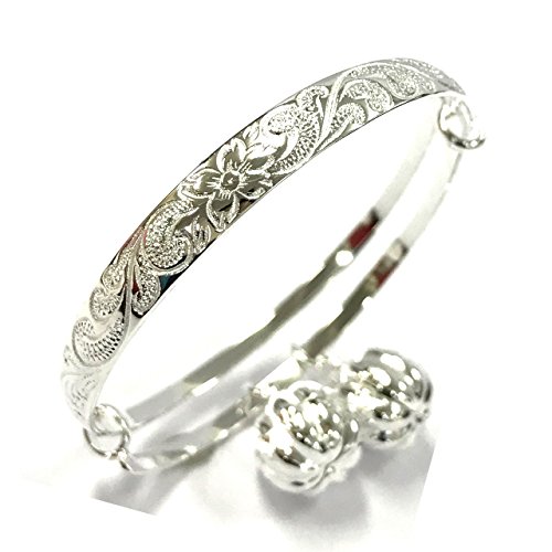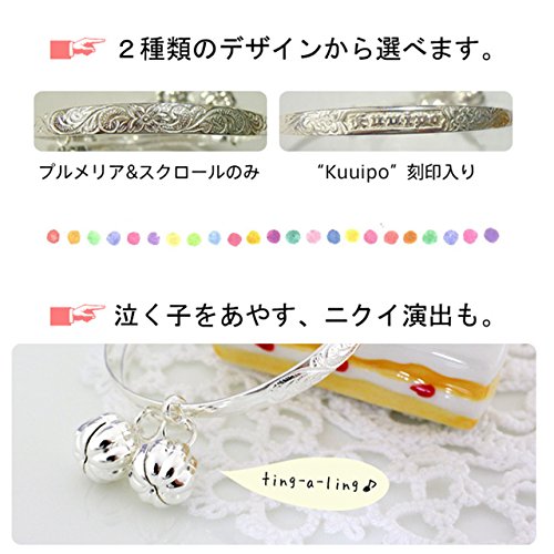 Ripple シルバーバングル シルバー925 ハワイアンジュエリー ベビー 赤ちゃんバングル 子供用 鈴付き プルメリア&スクロール
