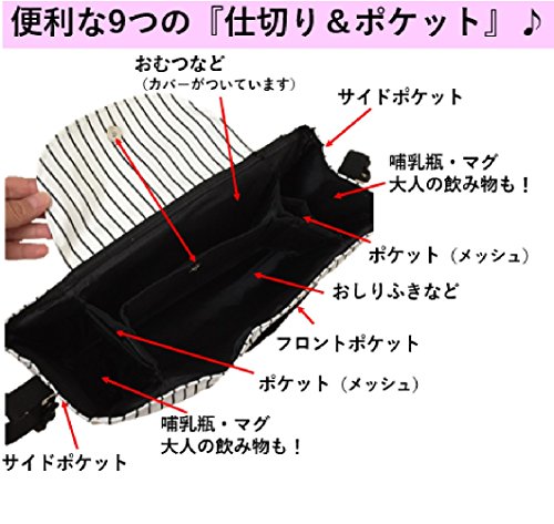 - コンパクトなのに収納力があります。哺乳瓶、おむつ、おしりふき、マグ、タオル等あかちゃん用品はもちろん、携帯、小物等様々な物を収納することができます。(9つ仕切り、またはポケットがついています)小分けで収納できるので必要な物をすぐに取り出すことができます。