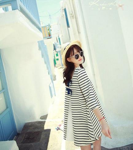マタニティ チュニック 可愛い バック リボン / Aライン/七分丈 レディース カジュアル 普段着/ 大きいサイズ
