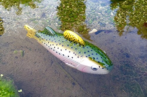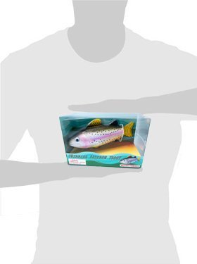 The Rittle Rainbow Trout is suitable for any type of water. Add one to a kiddie pool or stock your man-made pond, to the delight and fascination of guests. With a simple on/off button on the underside of the fish, this trout becomes a flipping hand-full. A water-tight seal protects the battery compartment, which you can access easily with a Phillips screwdriver. Each AA battery provides hours of realistic swimming action.