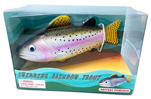 Give your child this realistic, swimming Rainbow Trout Water Toy, and treat him to hours of fun! The Rittle Rainbow Trout has all of the swimming motions and colorful, iridescent appearance of an actual rainbow trout, without the fishy smell! Powered by a single AA battery, the tail of this fresh catch whips back and forth to propel it forward in your bath tub or pool. If your child is fascinated by fish but still too young to care for their own aquarium, this is an ideal alternative to neon tetras, goldfish and algae eaters. Set up an aquarium, and stock it with several care-free, odor-free Rittle Rainbow Trout or other Rittle Realistic Swimming Fish.