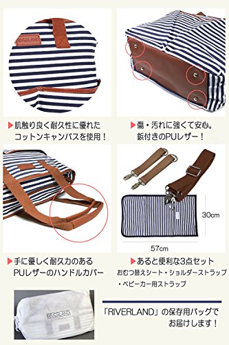 Riverland(リバーランド)マザーズバッグ デザイナー トートバッグ 大容量 おむつ替えシート セット 3way (ネイビー)