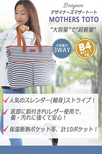 - 【大容量で超軽量!】同仕様のマザーズバッグの中でも最軽量を誇ります。 【人気のスレンダーストライプ!】細身のボーダーが爽やかでおしゃれです! 【底部に鋲付きPUレザー使用!】傷・汚れに強く、安心して使用できます! 【保温断熱ポケット等 計10個のポケット!】子育てに必須の保温断熱ポケットなど機能的ポケットが便利です。