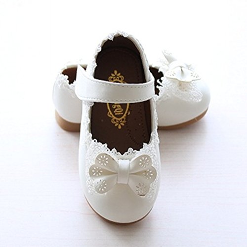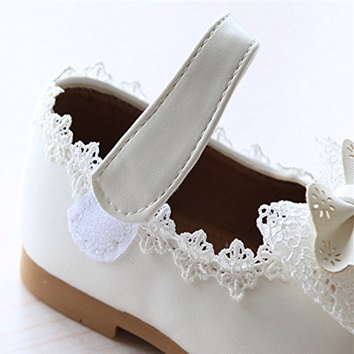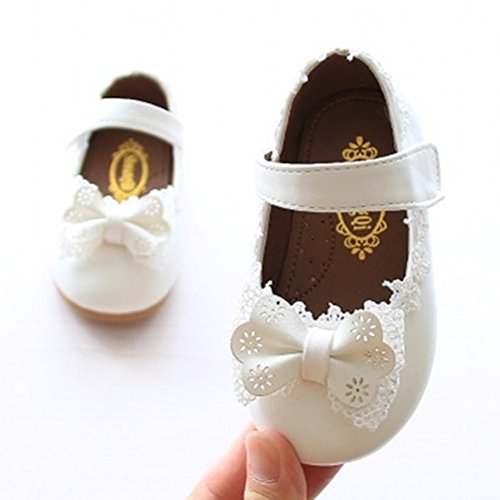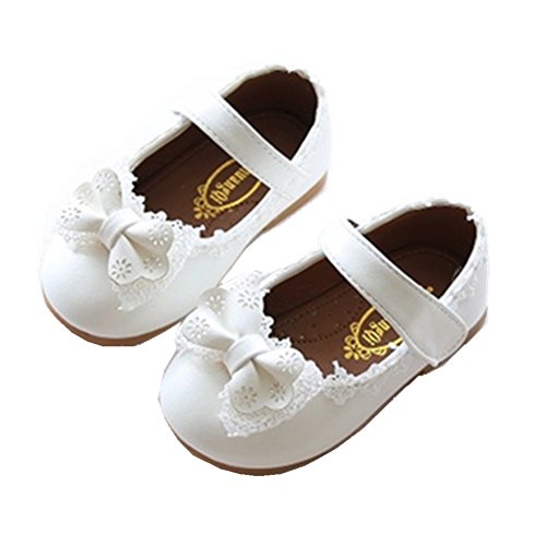 RoRykon ベビー 靴 フォーマル シューズ 可愛い 女の子 ファーストシューズ リボン 柔らかい マジックテープ ピンク 白 結婚式 入園 出産祝い (内寸14cm, ホワイト)