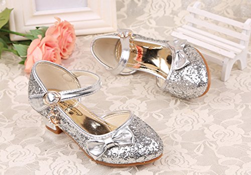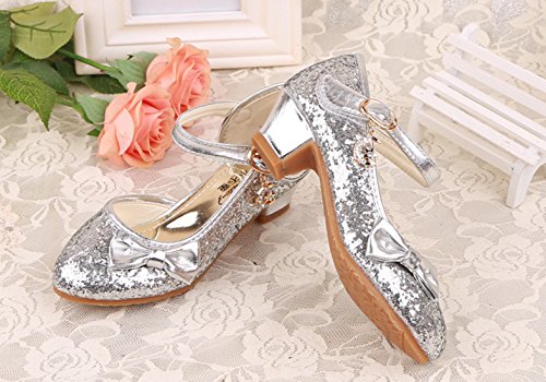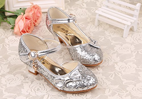 RoRykon 子供 フォーマル シューズ 子供フォーマル靴 パンプス フラワーガールズ シューズ女の子 子供靴シューズ発表会・卒入園式・入学式に子供スーツやドレスと合わせて (31/内寸約19.5cm, シルバー)
