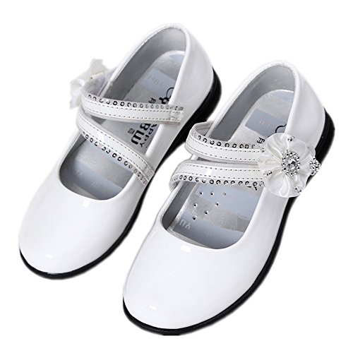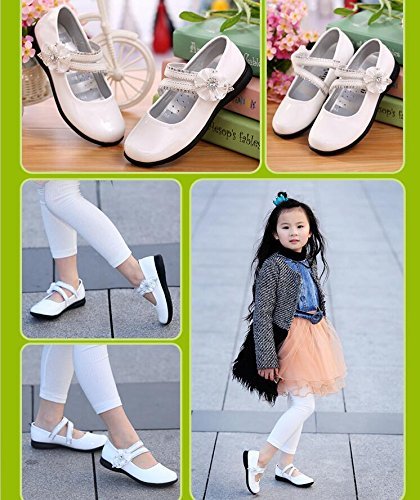 RoRykon 子供フォーマル靴 ガールズシューズ 女の子 子供靴 シューズ ドレス用 七五三 誕生日 結婚式 入園式 発表会 プレゼント 演奏会 花嫁介添人 フラワー飾り (38码/内长23cm, ホワイト)