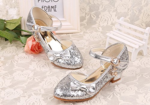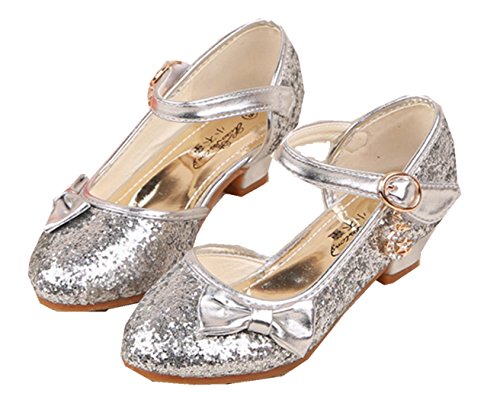 RoRykon 子供 フォーマル シューズ 子供フォーマル靴 パンプス フラワーガールズ シューズ女の子 子供靴シューズ発表会・卒入園式・入学式に子供スーツやドレスと合わせて (28/内寸17.7cm, シルバー)