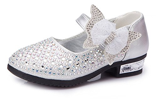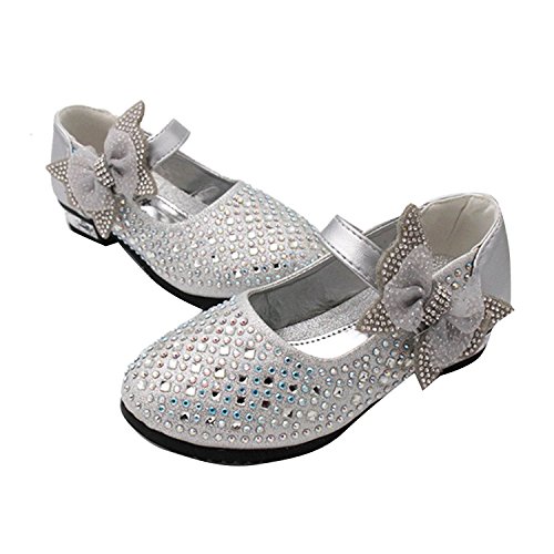 RoRykon 子供フォーマル靴 フォーマルシューズ 女の子 キッズ シューズ 子供シューズ ドレス用 七五三 誕生日 結婚式 入園式 発表会 プレゼント 演奏会 花嫁介添人 フラワーガール (34/内寸約20cm, シルバー)