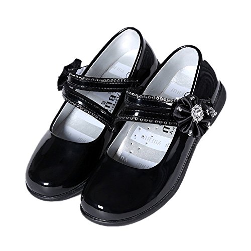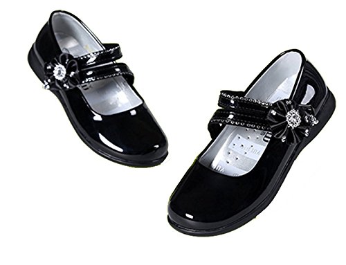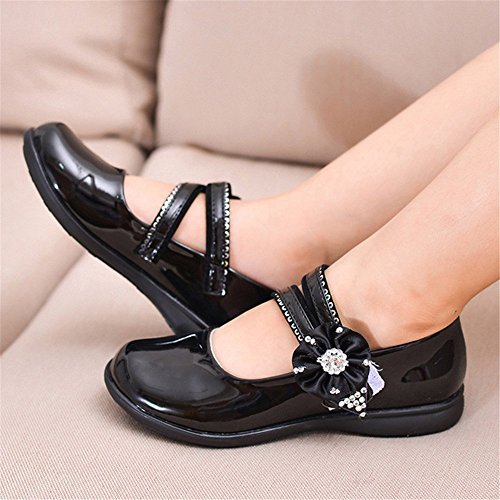 RoRykon 子供フォーマル靴 ガールズシューズ 女の子 子供靴 シューズ ドレス用 七五三 誕生日 結婚式 入園式 発表会 プレゼント 演奏会 花嫁介添人 フラワー飾り (33码/内长20.2cm, ブラック)