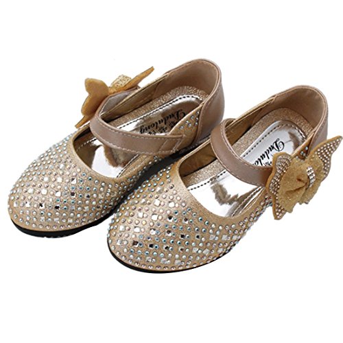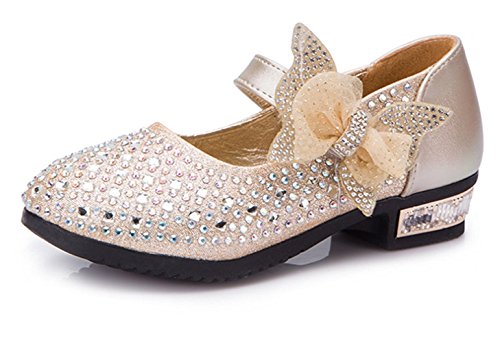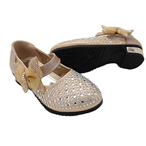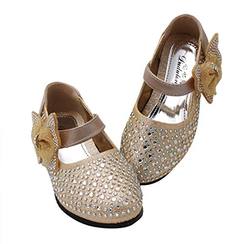 RoRykon 子供フォーマル靴 フォーマルシューズ 女の子 キッズ シューズ 子供シューズ ドレス用 七五三 誕生日 結婚式 入園式 発表会 プレゼント 演奏会 花嫁介添人 フラワーガール (32/内寸約19cm, ゴールド)