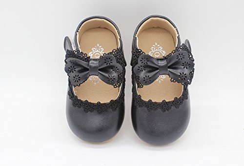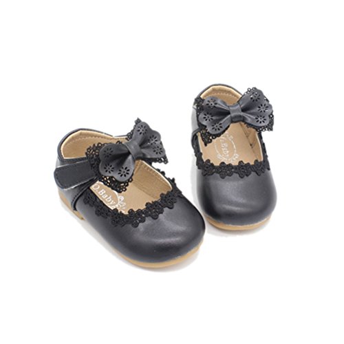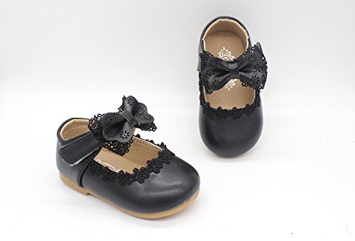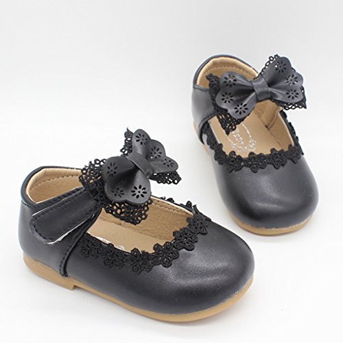 RoRykon 1~3歳 ドレスシューズ PUレザー 蝶結び レース 滑り止め フォーマルシューズ 女の子 キッズ 結婚式 入園式 発表会 プレゼント 演奏会 (17/内寸12.5CM, ブラック)