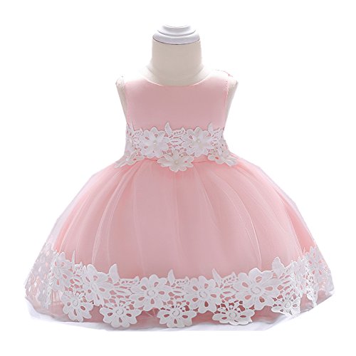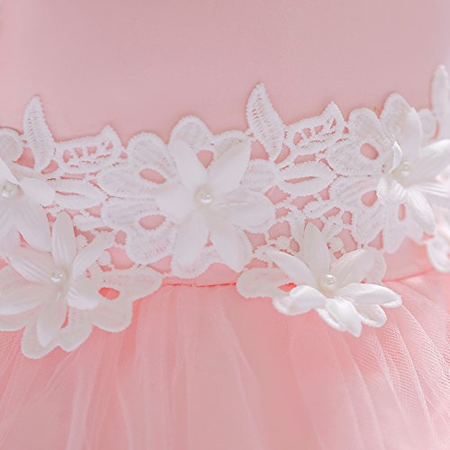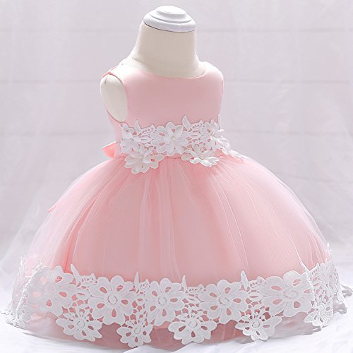 RoRykon 子供ドレス ベビードレス 花柄 ベビーデイジー 結婚式 セレモニードレス フォーマルドレス 赤ちゃん お宮参り (90cm, ピンク)