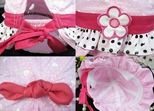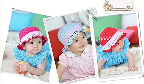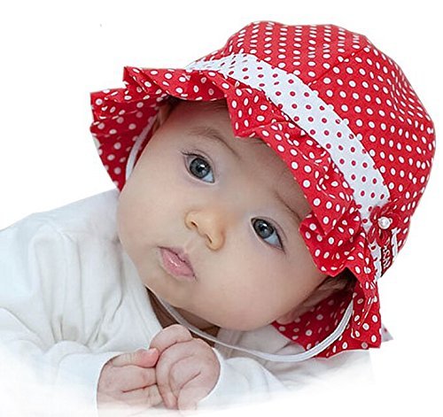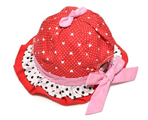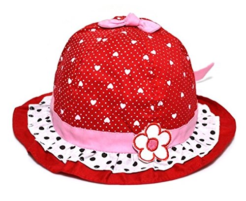 RoRykon 乳児用 赤ちゃん用の帽子 水玉 可愛い 帽子 つば 付き フリル リボン ドット 花 フラワー フード ベビー キッズ 日焼け 帽子 UV 日よけ (レッド)