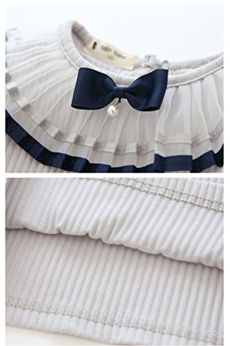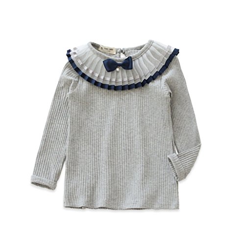 RoRykon 子供服 女の子ブラウス ガールズブラウス フォーマル リボン フリルブラウス 長袖 無地 入学式スーツ用ブラウス キッズTシャツ 丸襟 発表会 結婚式 七五三 (130CM, グレー)