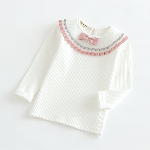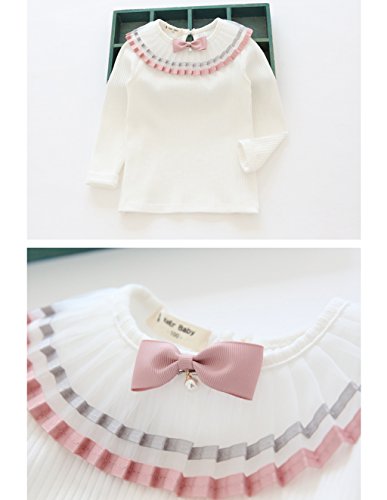 RoRykon 子供服 女の子ブラウス ガールズブラウス フォーマル リボン フリルブラウス 長袖 無地 入学式スーツ用ブラウス キッズTシャツ 丸襟 発表会 結婚式 七五三 (130CM, ホワイト)