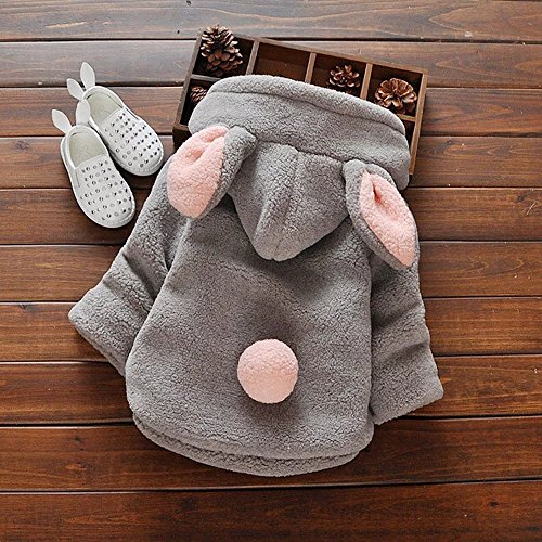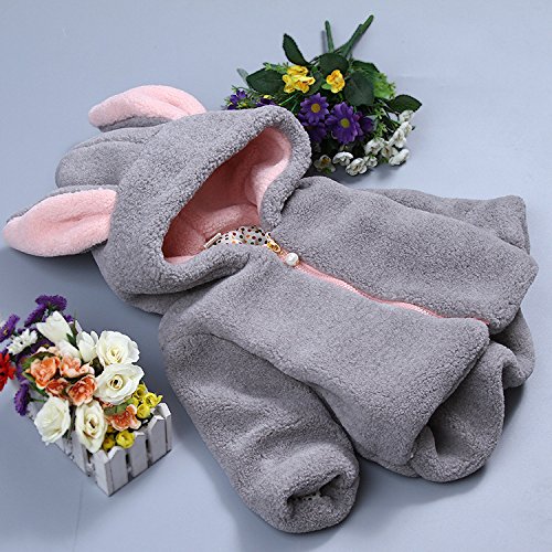 RoRykon ベビー服 子供服 女の子の綿服 冬の暖かいコート・ジャケット・アウターウェア 冬の暖かいコート可愛いウサギ ジャンパー子供服 上着 女の子 暖かい ソフトコート秋 防寒 アウター (110cm, グレー)
