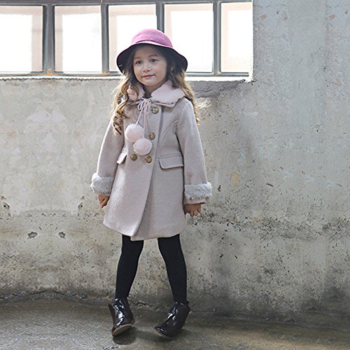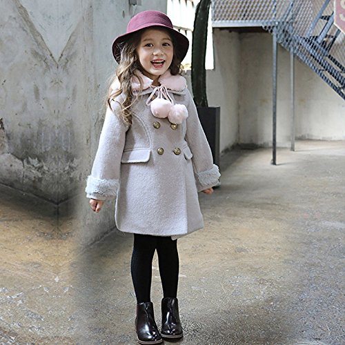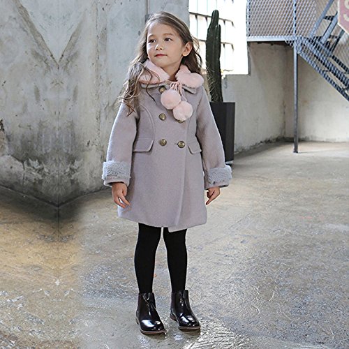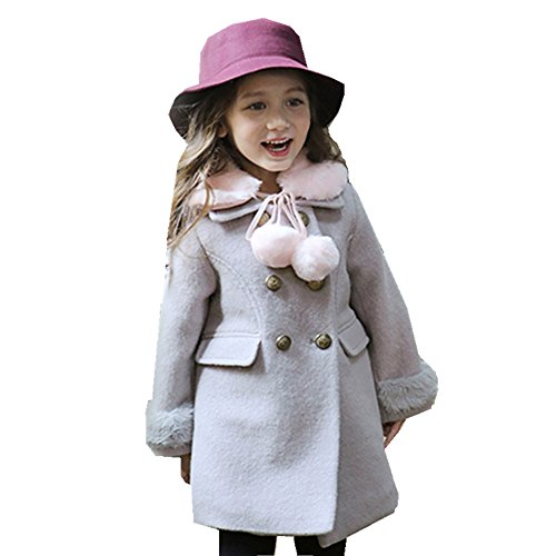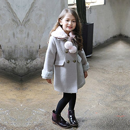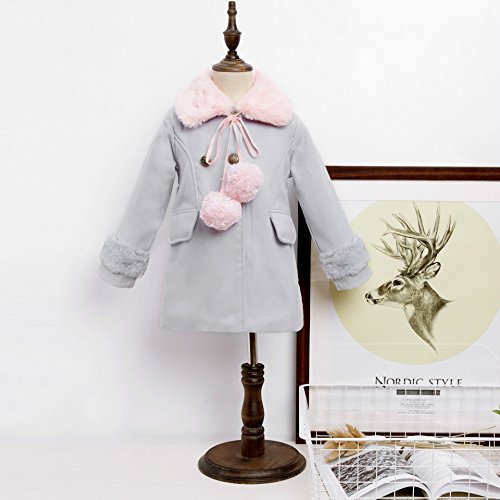 RoRykon 秋 冬 キッズ ジュニア 子供 女の子 ジャケット コート きれいめ かわいい ポケット付き おしゃれ ファー ティペット付 クラシカル 上品 可愛い カジュアル (100cm, グレー)