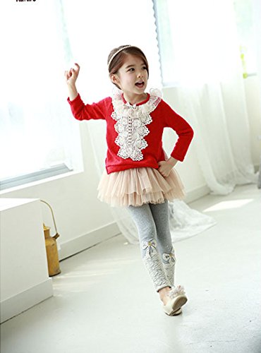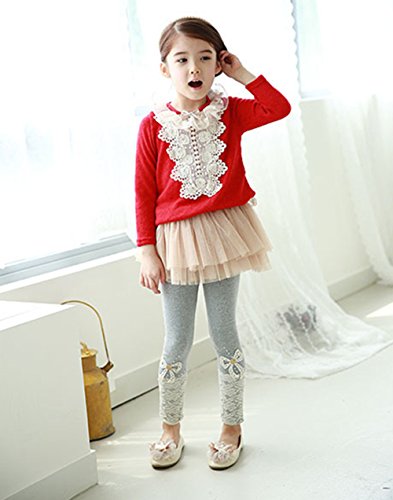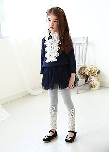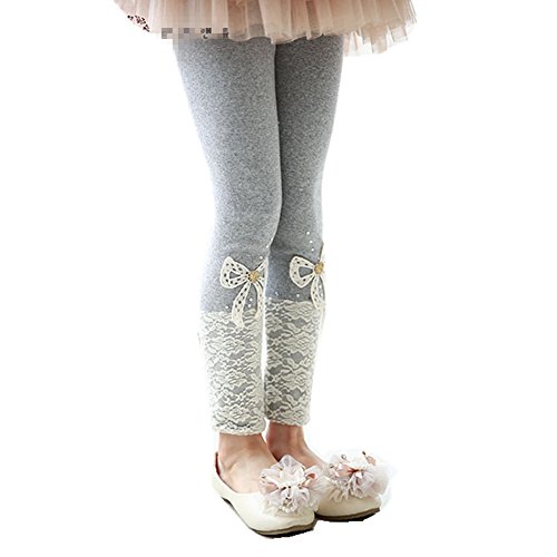 RoRykon 女の子レギンス 子供長ズボン 女の子 レース ガールズレギンス レギンス パンツ 春秋 カジュアル ドレス用レギンス 発表会 100cm-150cm (110cm, グレー)