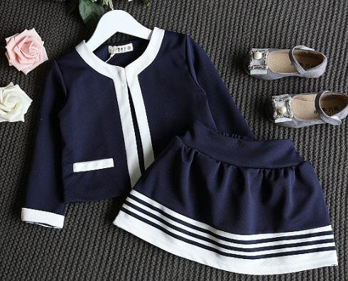 - 女の子のキッズフォーマルセットです。紺色と白色で、きちんとした印象で、ちょっぴり大人っぽくレディなスタイルで。