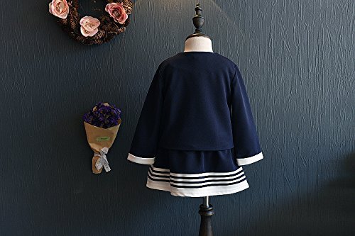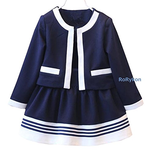 RoRykon 子供服 女の子 フォーマルスーツ ジャケット スカート 2点セット ガールズ フォーマル スーツ セット アップ 紺 ボーダー 裏地あり 上質 女の子スーツ 入園式 卒園式 入学式 卒業式 結婚式 発表会 七五三 (130cm)