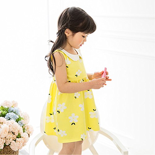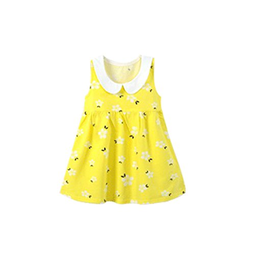 RoRykon ベビー服 女の子 キッズ 洋服 ワンピース ドレス オーガニックコットン ガールズワンピース 夏サマー ふんわり柔らかい肌触り 出産祝い 贈り物 可愛いベビー (90cm(18~24ヶ月), イエロー)