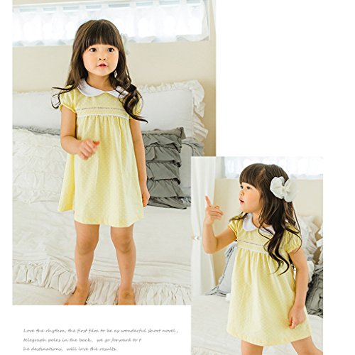 RoRykon ベビー服 女の子 キッズ 洋服 ワンピース ドレス オーガニックコットン ガールズワンピース 夏サマー ふんわり柔らかい肌触り 出産祝い 贈り物 可愛いベビー (110cm(36~48ヶ月), イエロー)