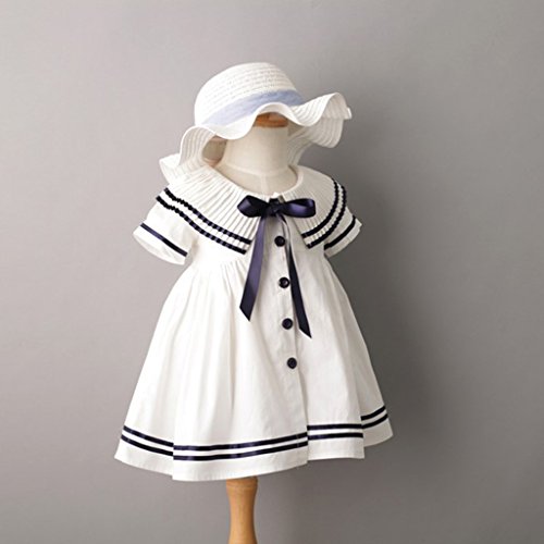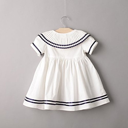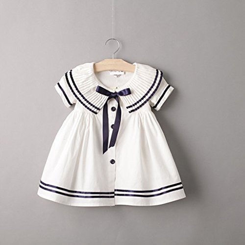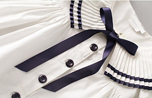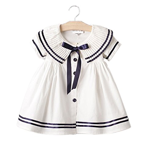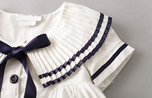 RoRykon 夏 ベビー服 ベビーワンピ ベビー肌着 ワンピース 新生児服 リボン ふんわり柔らかい肌触り 丸襟 可愛い 学院風 出産祝い 贈り物 (120(身長110CM対応), ホワイト)