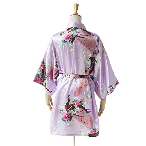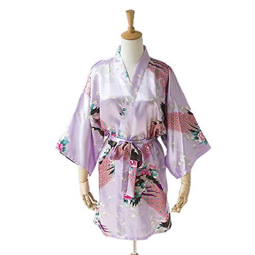Robe&Wedding SLEEPWEAR レディース Long Styleファッション Women's Sexy Robes Yukata Satin ナイトウエア Nightwear (light purple)