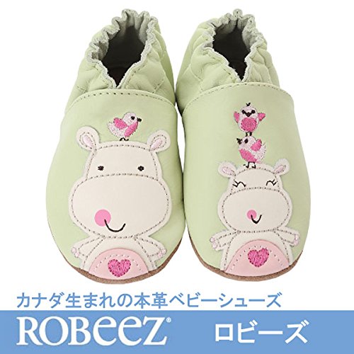 ロビーズ 本革ベビー靴 ソフトソール APMAアメリカ足病学協会認定の赤ちゃん靴 ファーストシューズ ベビーシューズ ベビー靴 室内履き 保育園 上靴 18-24mos Happy Hippos [並行輸入品]