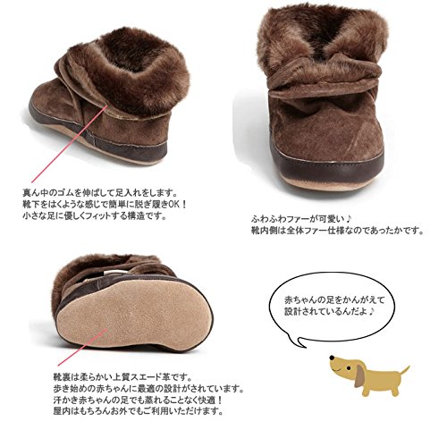 ロビーズ ブーツ ソフトソール Cozy Ankle APMAアメリカ足病学協会認定の赤ちゃん靴 ファーストシューズ ベビーシューズ ベビー靴 室内履き 保育園 上靴 ブーツ ブーティー 12-18mos ブラウン [並行輸入品]