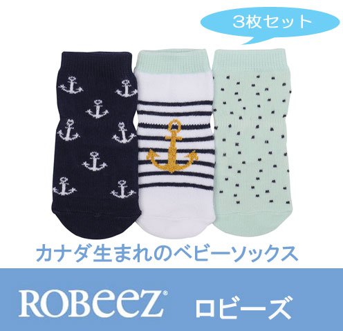 [ロビーズ ]Robeez 男の子ベビー靴下3足セット 赤ちゃん男の子の子靴下 ソックス ファーストシューズ ベビーシューズ ベビー靴 室内履き (12-24mos, Anchors Aweigh) [並行輸入品]
