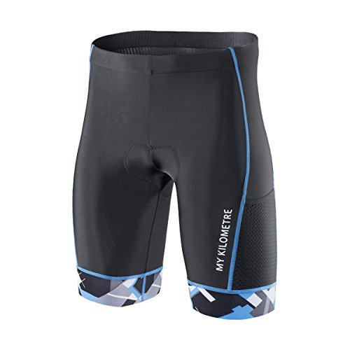 KILO PADDING Triathlon Men`s Shorts 9 inches Blue with Two pockets Chamois for Long-distance Tri Race(L Blue) [並行輸入品]