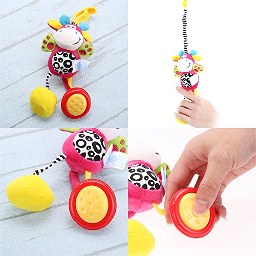 ベビーカー用玩具 ひっぱる動物おもちゃ ガラガラおもちゃ かわいい ぬいぐるみ 知育玩具 吊り下げおもちゃ ピンク