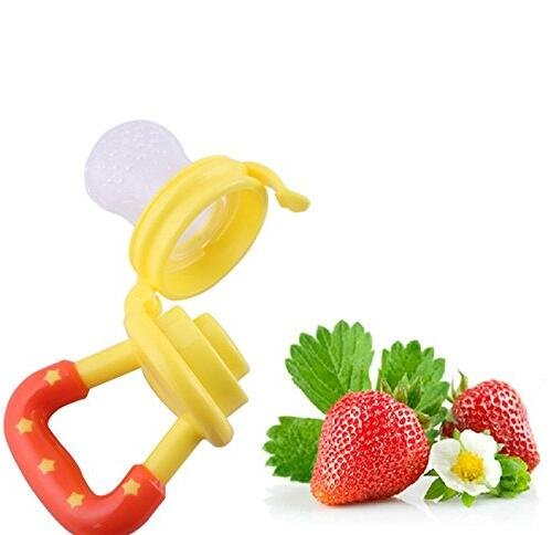 フードグレード 赤ちゃん用離乳食 おしゃぶり 歯がためフレッシュフード シリコン製 キャップ付き 1個 イェロー