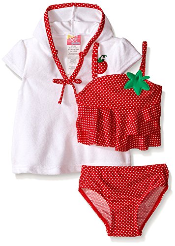 Sol Swim Little Girls' Toddler Two-Piece Swimsuit with Terry Cover Up Red 2T [並行輸入品]