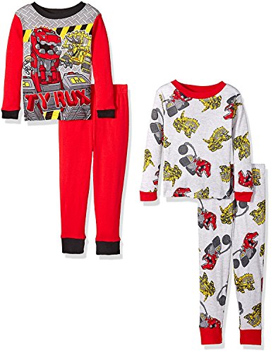 DinoTrux Boys' Toddler Boys' 4-Piece Cotton Pajama Set with Dino Red/Grey 4T [並行輸入品]
