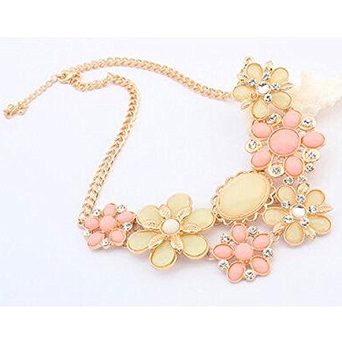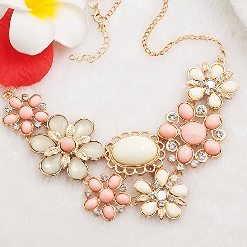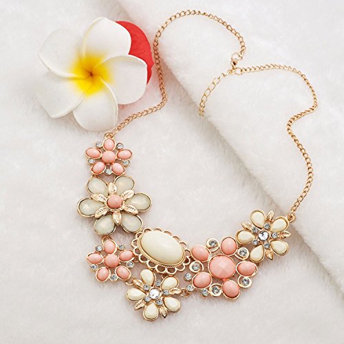 LilyJewelry Flower Crystal Chunky Statement Necklace Bib Choker Pendant (Pink) [並行輸入品]