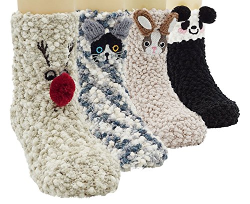 Lovful 4 Pairs Animal Super Warm Baby Fuzzy Soft Thick Socks [並行輸入品]
