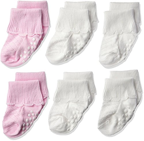 Jefferies Socks Baby Girls' Non-Skid Scalloped Turn Cuff 6 Pack White/Pink Toddler [並行輸入品]