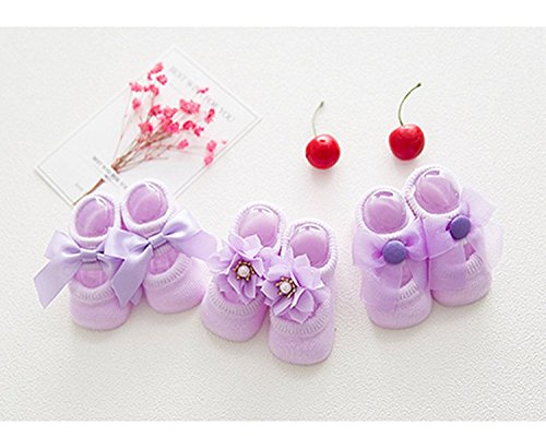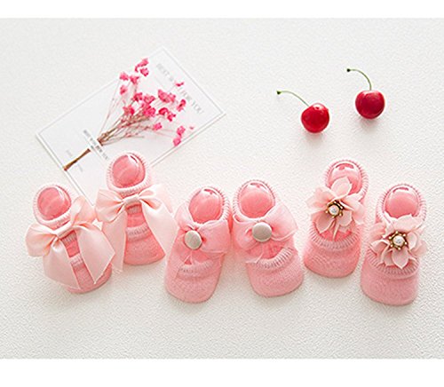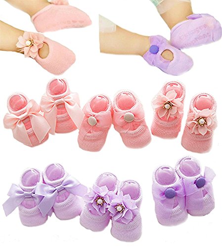 Toptim Baby Girls' 6 Pairs Bowknots Socks Lace Antiskid Toddler Walker Sock 6-12 M [並行輸入品]