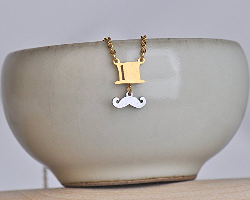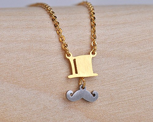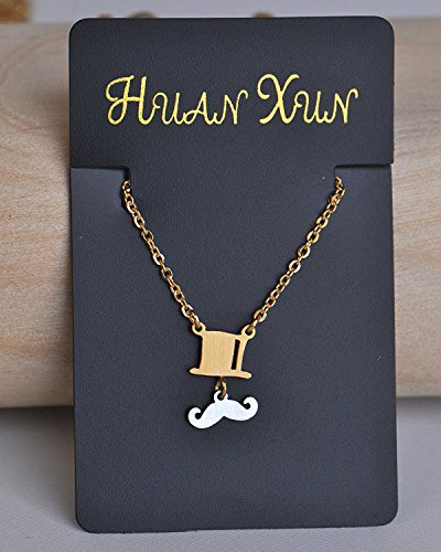 Huan XUN British Mustache and Top Hat Necklace Link Charm Pendant Charm Jewelry 16 [並行輸入品]