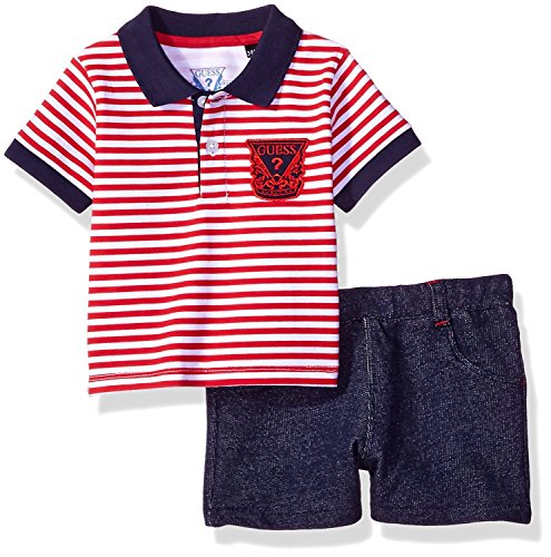 GUESS Baby Boys' Set Polo + Shorts White Stripe Red 12M [並行輸入品]